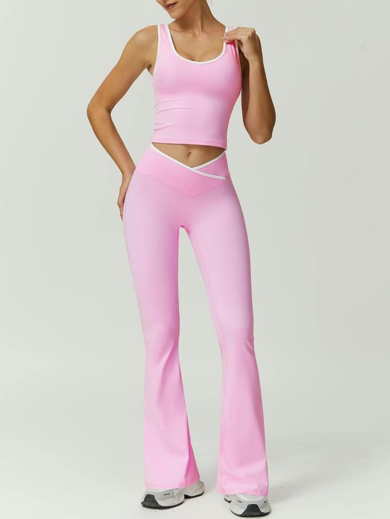 Summer Outfits 2Pcs Matching Clothing Set Sports Bra Bell Bottoms Tummy Control High Waisted Leggings Sets Crop Tops Stretchy Running Fitness